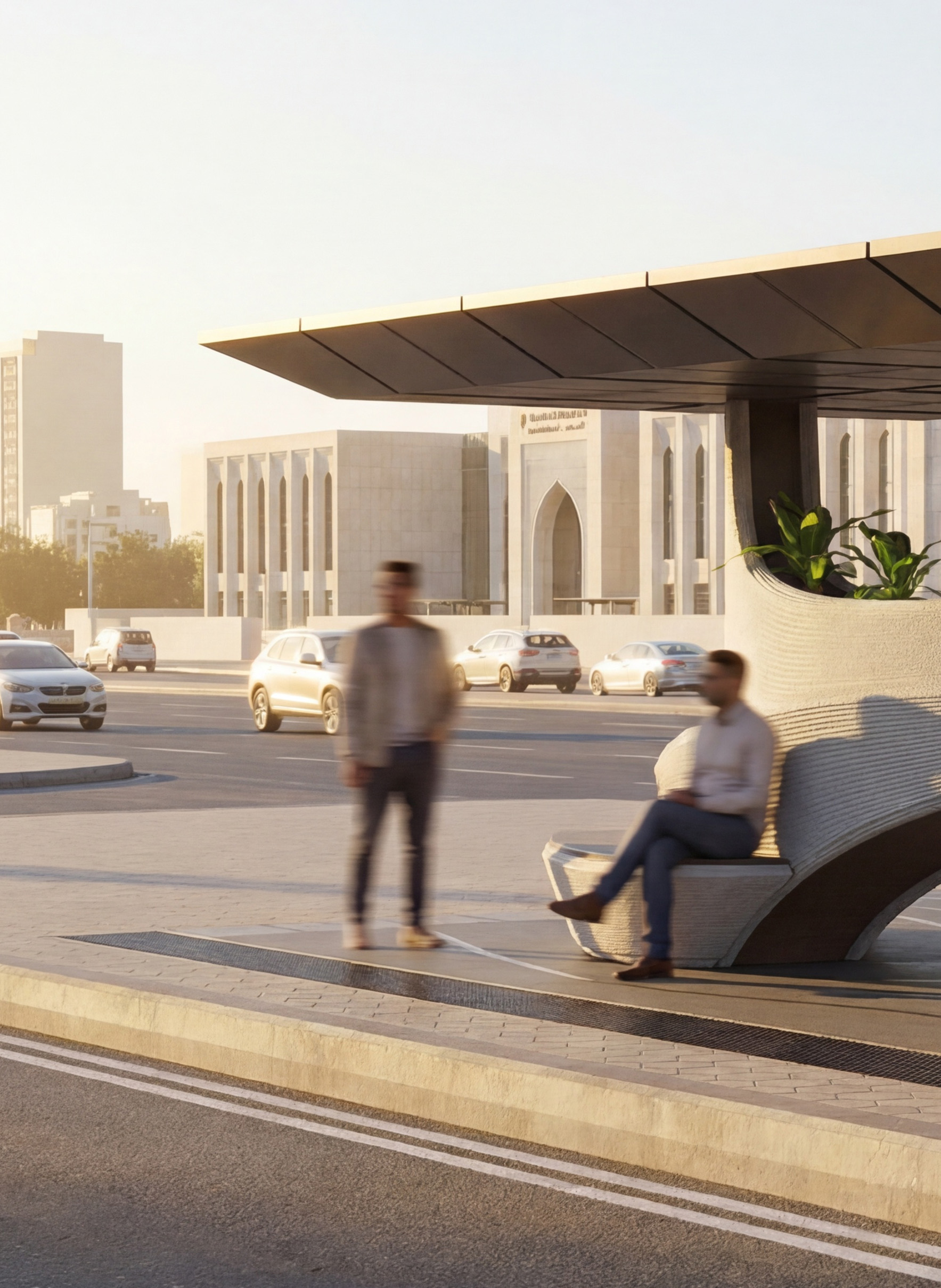 Differential joined forces with Al Sager Wertel Architects and Kuwait Foundation for the Advancement of Sciences (KFAS) to re-imagine a series of modular bus stops along Ahmed Al Jabar Street in central Kuwait.